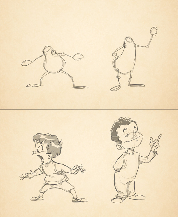 漫画基础教程,成人绘画与婴儿、儿童或青少年绘画的区别直接与他们的解剖比例有关。但在卡通风格中,定义你的角色的不仅仅是这些。在人生的这个阶段,有一些特定的行为和举止,可以让你的角色在公众面前有更大的吸引力。 今天我将解释这些秘密是什么,这样你就可以很容易地画出那个漂亮的婴儿(或者那个顽皮的孩子!) 重要的是要知道一个成年人(超过18岁)测量大约8个头。请看下图: 从这些比例中,我们可以确切地知道手臂的位置或者腿的起始位置等等。嗯,当你创作卡通风格的图画时(夸张和强烈的),这样的比例并没有发挥应有的作用,对吗? 这样的计算在漫画中是相当复杂的!我的第一个建议是,尽量画得宽松一些,然后根据角色的需要添加必要的特性。所以,首先,我想鼓励你去练习素描技能尽可能多的,所以你不需要进行一系列的指导方针在一张纸上只要你画一个卡通人物(因为,老实说,这是一个极其无聊的任务!)。 尽管如此,比例仍然是一个非常重要的准则(即使它只适用于你自己的特定世界)。让我们来看看下面的图片: 主要年龄段比例比较:幼儿;青少年和成人。 正如您所看到的,使用该技术可以很容易地定义每个字符的大致年龄来测量其比例。注意,随着年龄的增长,你的头会保持不变,但是你的腿会变长,你的胸部会变宽,你的脖子会变得更强壮。在卡通中,小孩子的头甚至比大人的还大。肩膀的大小几乎和头部的宽度一样,腿的大小也和手臂差不多。 让我们来仔细看看用我一路上学到的规则来画卡通儿童的基本特征(这非常有效!) 孩子基础知识 圆圆的脑袋和小小的下巴 我在设计孩子的头部时学到的最重要的技巧之一是,它们应该大一些,而不是那么清晰。这意味着脸部的骨头没有成年头部那么明显。注意下图: 你应该注意的另一件事是关于下巴的:他远没有成年人那么突出,而且常常几乎看不见。这是因为与头骨大小相比,儿童天生的下颚要比成人小。这种技术可以让脸看起来更蓬松,脸颊更突出。 大,大额头! 如果你在网上搜索任何一张小孩头部的x光照片,你会立刻注意到他们的头部和下巴的比例有多大!注意下面的前额应该比成人的前额更突出。让我们来看看下面的图片在侧面视图: 一旦孩子的额头变大,他们的眼睛也应该放在成年人眼睛高度的假想线以下: 说话的眼睛…… 在卡通绘画中,任何年龄的孩子的两眼之间往往有更大的空间。这绝不是一条规则,但是使用这个概念很有可能获得巨大的成功。 大耳朵和小鼻子 这是很常见的老年人有非常大的耳朵和巨大的鼻子。在卡通中,这些特点被稍微强调,以创造一个扭曲的现实,并提供更大的视觉兴趣的角色。然而,儿童的一个共同特征是,他们的大耳朵也向前突出,但鼻子很小。这种技术的使用在卡通艺术家中几乎是一致的。 这些只是利用儿童身体自然生长过程的艺术方式:它们仍处于发育阶段,一些成员在不同的时间间隔以不同的大小生长。当他们成为青少年直到成年,他们中的大多数看起来也有点尴尬。知道如何利用这些有利于你的角色的特点。 巨大的头发 另一种广泛应用于卡通绘画的技术是玩弄头发的大小。再一次,艺术家们几乎达成了一致,那就是画出长着大头发的孩子们,通常都有自己的动作和生活。 头发是一个广泛的课题。同样,它们可能会根据种族、文化和风格特征而有所不同。一些艺术家更喜欢画几条细节线来代表人物的头发,而其他人则只画头部周围的主要轮廓。你可以选择自己的风格。 整个身体和婴儿 正如我在之前的教程中已经说过的,卡通身体遵循一种称为梨形身体(或者豆形身体,如果你喜欢的话)的约定。你的角色的成功将取决于你的艺术能力,结合这些特点与圆形的形状。 如前所述,从出生到成年,人体的比例发生了巨大的变化。婴儿——尤其是新生儿——非常奇怪:他们没有脖子,他们的头很大,他们没有牙齿,他们的胳膊和腿实际上是一样大的。 请注意,脆弱和天真是这段人生的焦点。婴儿会爬,他们不知道如何站起来,他们不会独自吃饭,也不会自己上厕所。他们基本上依赖于成年人。然而,当处理漫画时,没有什么可以阻止我们夸大表达和创造扭曲的现实: 婴儿身上布满了褶皱,这仅仅是因为他们比成年人有更多的皮肤可以覆盖骨头。这让他们看起来又胖又可爱(还有点皱)。在画宝宝的时候,尽量多画一些圆形线条而不是直线: 在现实生活中,婴儿的眼睛很小,而且是闭着的,但是在动画片中,他们非常有表现力,非常巨大,为了和大脑袋更好的和谐相处。这种技巧适用于任何试图传递可爱印象的角色,所以这更多的是风格和品味的问题,而不是规则。 你在不同的形式上投入的越多,赋予你的角色个性,你的艺术就会变得越高效和多样化。所以,永远要寻找角色之间的细微差别,即使他们年龄相同。 衣服,行为和性格 衣服不仅是你性格中不可或缺的一部分,而且有助于强调不同性别之间的不同特征。确保你的角色的衣服也适合他们的个性: 要进一步 翻译地址:https://design.tutsplus.com/tutorials/cartoon-fundamentals-how-to-draw-children--cms-21954 |