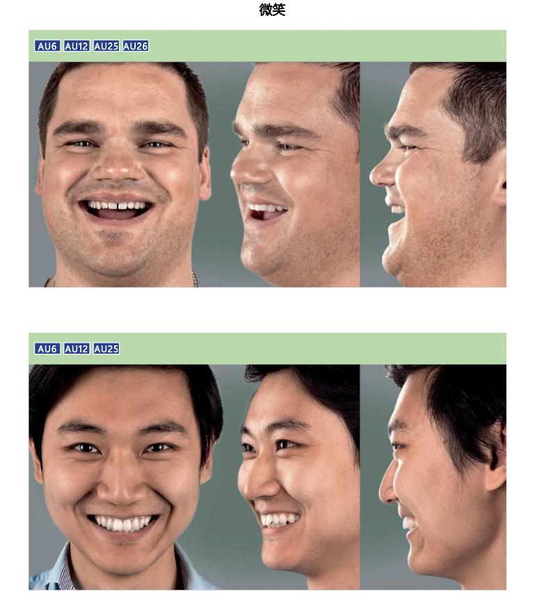 颧大肌,眼轮匝肌(眶部),降下唇肌,口轮匝肌