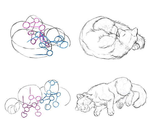 常见姿势的提示躺着绘制产蛋动物的主要问题是某些肢体仅部分可见。如何获得每个部分的适当长度?半遮盖的肢体实际上应该在哪里?